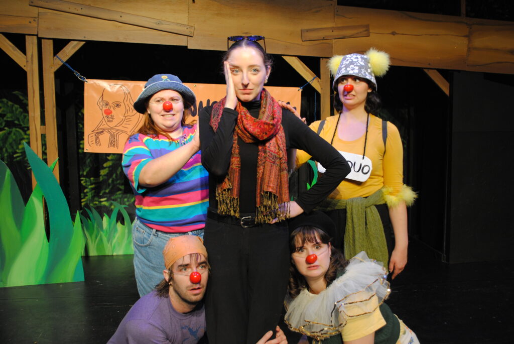 Clowns Reading Shakespeare is a family-friendly theatrical performance featuring a troupe of red-nosed clowns auditioning for a diva Director and her yet-to-be-determined Shakespeare show!